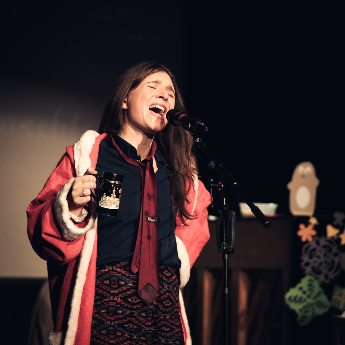 DIe Weihnachtswerkstatt 2025 — Adrian Albert, Clara Brill, Elli Germann, Hannah-Sofie Schäfer, Nika Jonsson – Theater im Viertel, 6.12.2025 (Photo: Katrin Reis) — MC060492